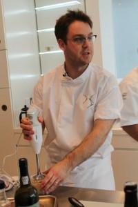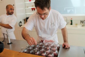 A crew of bloggers and writers descended on Dulwich, to ‘help’ Tim prepare two of the courses from the menu, which is five courses and based around the five senses. The concept behind the menu was to create something innovative, extraordinary and delicious. We were lucky to get the chance to cook with Tim, who is not only a highly skilled chef, but passionate about what he does. He got us all preparing separate elements of the pudding, which was called ‘Aromas of Syrah’, and was pretty phenomenal. Chocolate ganache, grape jelly, a fragrant foam, all topped off by a swirl of smoke.