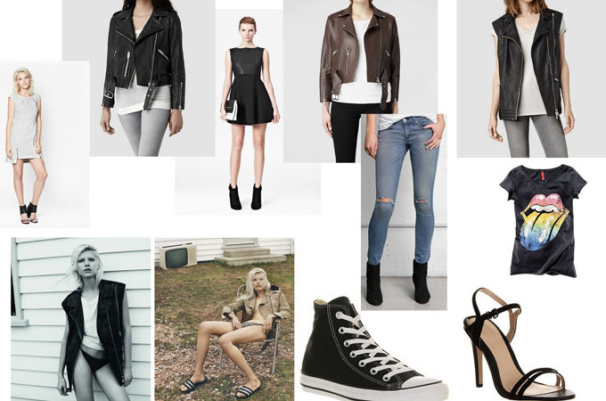 The easiest look to pull off is the obvious rock chic/biker girl look. This is one of my favourites, and a great one to wear for a day-to-night look. You can pair your leather with some dark skinnies, a cool top and statement accessories, and then you’re good to go. A rock n roll top, laced with plenty of attitude, is the perfect combination for your leather and even ripped skinnies. Finish off with a pair of well-worn in sneakers to add to the edginess and spend the day looking cool.